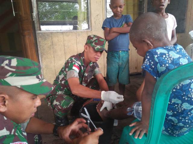 Kali ini Satgas Yonif Para Raider 501 Kostrad menggelar kegiatan pemeriksaan kesehatan anak di Panti Asuhan Shalom, Arso 8, Distrik Arso, Kabupaten Keerom, Rabu (14/6).