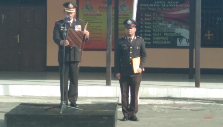 Amanat Presiden Negara Republik Indonesia, Jokowi yang dibacakan Kapolres Manokwari AKBP Adam Erwindi, SIK. MH menyampaikan tentang pentingnya menghayati dan mendalami nilai-nilai luhur Pancasila sebagai Dasar Bagsa Indonesia dalam kehidupan Berbangsa dan Bernegara.