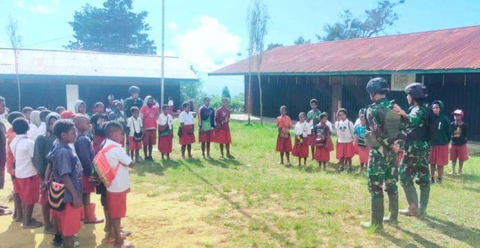 JAYAWIJAYA, PapuaSatu.com – Pembentukan karakter dan disiplin sejak dini kepada anak-anak Papua dilakukan Satgas Yonif 321/GT/13/1 Kostrad Pos Napua dengan melatihkan Peraturan Baris Berbaris (PBB) anak-anak SD YPGI Napua, Distrik Napua, Kabupaten Jayawijaya, Papua.