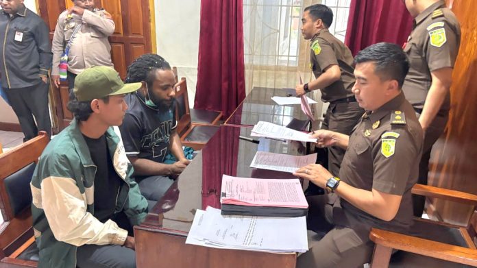 Penyerahan dilakukan oleh personel Satgas Ops Damai Cartenz bersama Personel Polres Puncak Jaya dari Polres Puncak Jaya menuju Nabire untuk melaksanakan tahap II (penyerahan tersangka dan barang bukti).