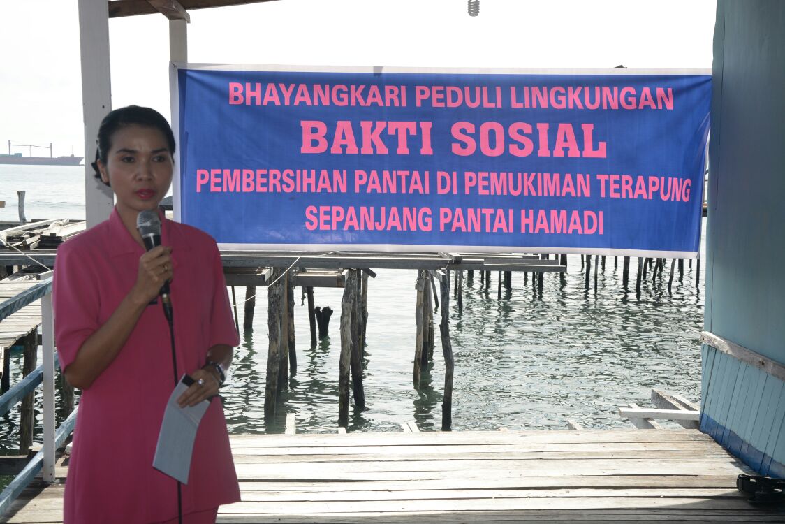 Peduli Lingkungan, Bhayangkari Polda Papua Bersihkan Pantai di Pemukiman Terapung