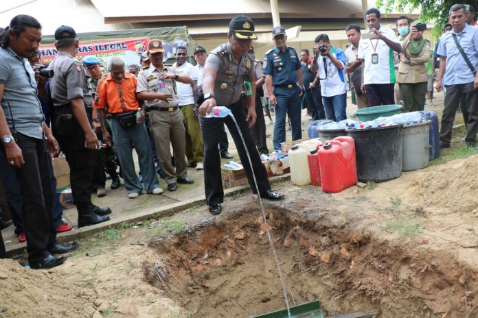 Pemusnahan ribuan miras tersebut, dilakukan dengan cara dipecahkan di galian tanah dan di kubur. Sebagian kemasan miras botol plastik dimusnahkan dengan cara dibakar.[yat]