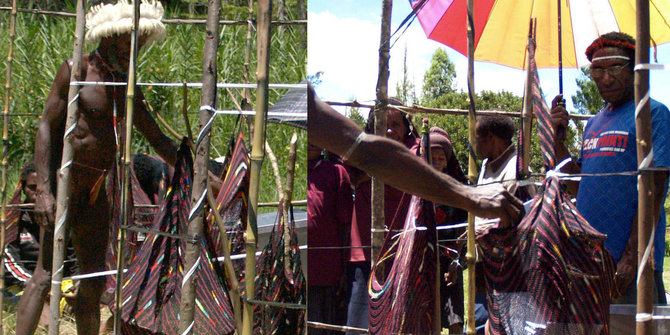 Penggunaan noken dalam Pilkada Papua. Foto : Reuters