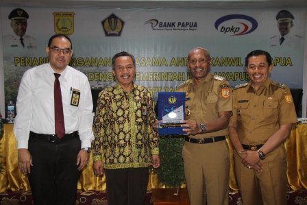 Penyerahan Penghargaan oleh KPP Pratama kepada Pemerintah Kota Jayapura sebagai Data tertinggi pembayaran pajak dana kampung di wilayah Kantor Pelayanan Pajak (KPP) Pratama Jayapura